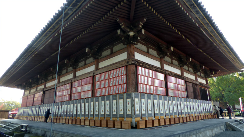 東寺の西院:御影堂の裏側というか、南面している方に護摩供修法所があり、たぶん、その奥、建物の中に秘仏不動明王がおられる。