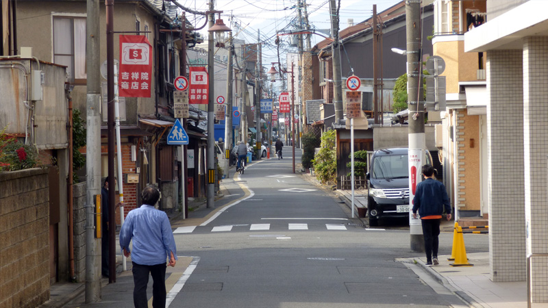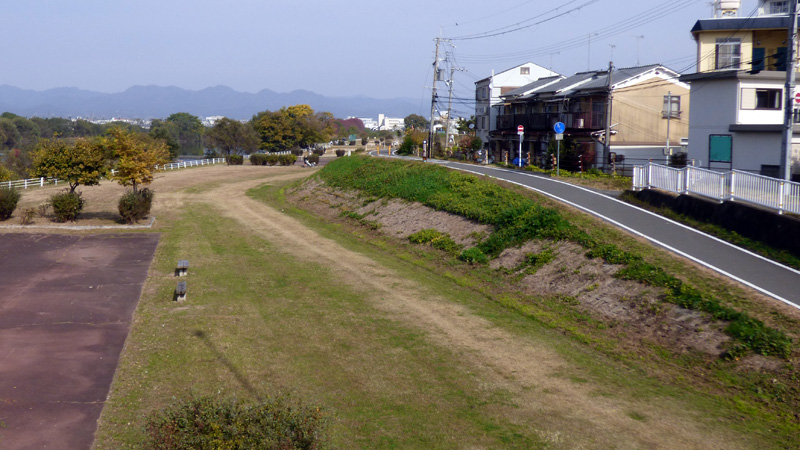 でも、非日常的な幅が仇となって、すぐに管理がいきとどかなくなり、牛馬を放牧したり…。「放牧…、都の真ん中で?」 時代が下ると、農地化したり…。「農地…、都の真ん中で?」 で、結局、今は、ご覧の通り、住宅地だね。