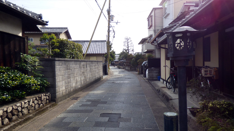 今、歩いている向日市は、大きさで言うと、日本で三番目に小さな市。でも、見て、この旧街道‼︎ 「い、石畳を敷いているね。すごい、気合が入ってるね‼︎