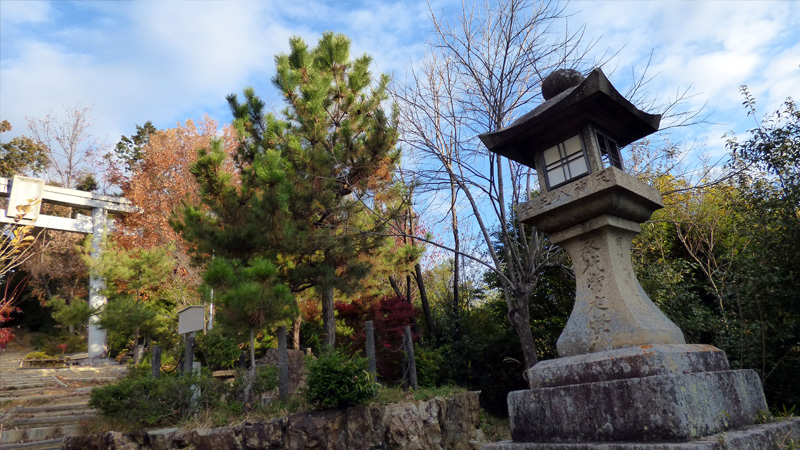 山の中腹にある松。写真の灯篭の左の冬枯れの木のもひとつ左の松。
