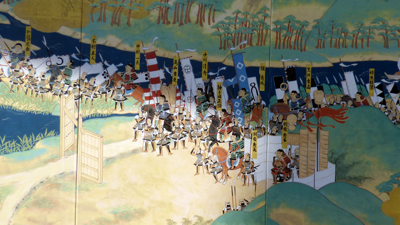 「ハイキングコースの山の中に、突然、こういうのが、あるんだね。」 実際そうだっただろう布陣を元に、絵が描かれていて、武将の名前も入っているから、分かりやすいね。
