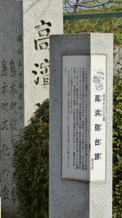 時期は、幕末だね。徳川幕府が、造った。三箇所。「三箇所も?」 淀川右岸のここ、高浜と、すこしさきの梶原。そして、淀川左岸、対岸の楠葉。外国船が、淀川を船で遡って、京都に攻め込んでくるのを、想定したみたい。ところが、敵は、予期せぬ方向から、やって来た。「えっ? どこ?」