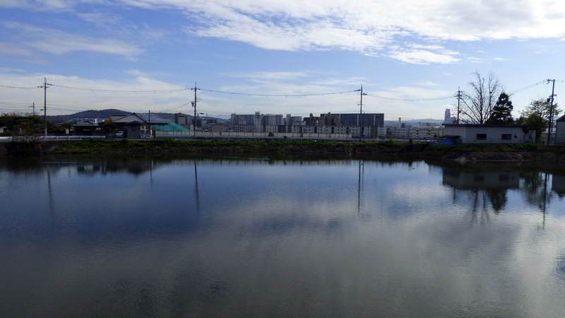 待宵の小侍従の顕彰碑から、反対側、東の方を望むと、正面は御所ヶ池、遠く左前方は石清水八幡宮のある男山。ここで、待宵すれば、なんか名歌ができそうなきがしてきたけど? 「誰を待つの?」