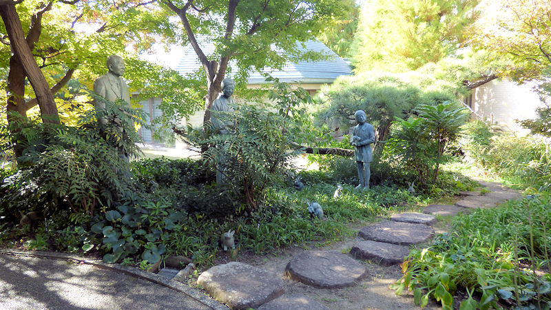 こちらの家族の像は、ここ、旧邸宅を寄付された大谷竹次郎さん家族の像みたいだね。