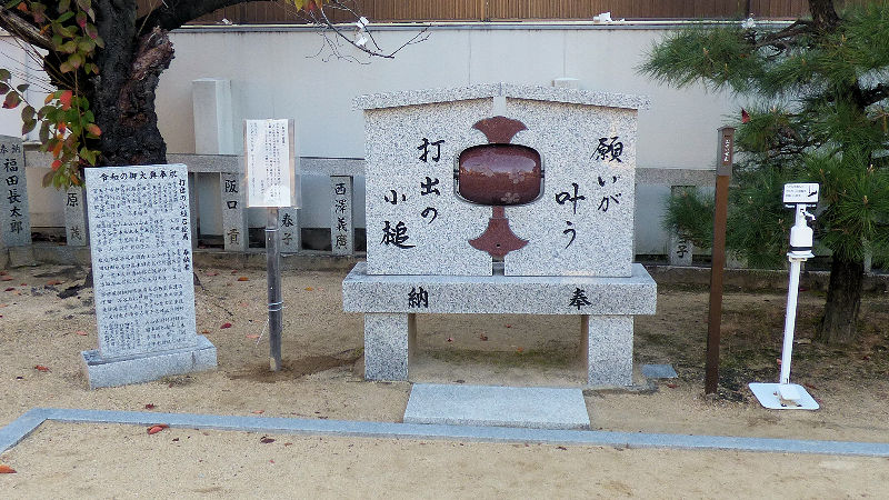 「打出の小槌があるね。」 地名にかけてだろうかね。そう言えば、今日のスタート地点、阪神電車の打出駅の住所は、打出小槌町だそうな。「縁起がいいね。」