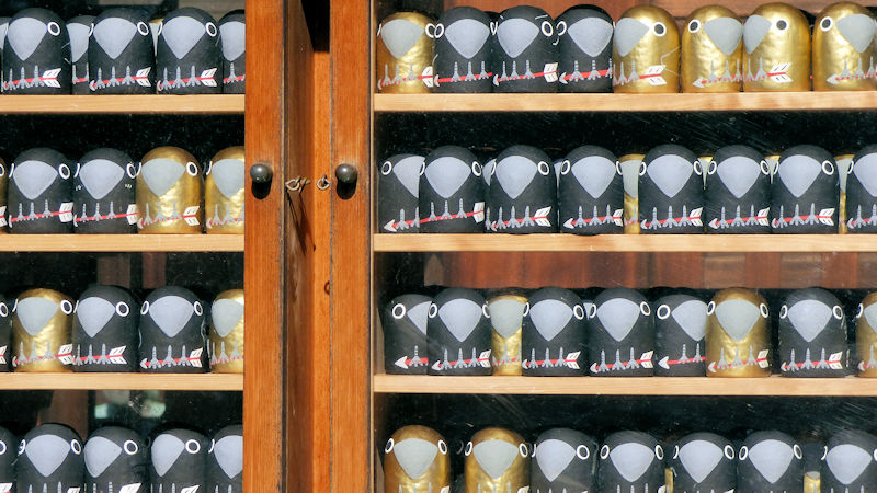 そう。それで、猫を見たら、市の合図、猫が人を招く象徴となって、お店の前なんかに飾られるようになったそうな。「へ〜、像にまでなって、ちょっと、照れくさそうな気もするね。笑。」
