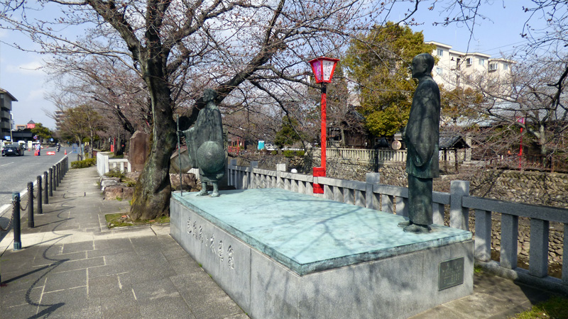 芭蕉と木因像。