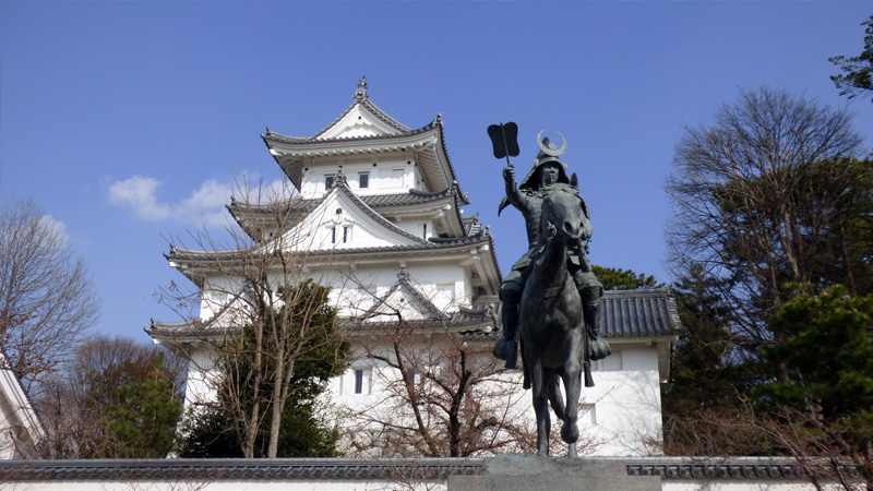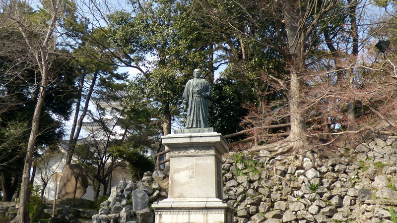 この、お殿様は、なかなかできた方だったようだね。江戸時代に入ってからの、最初の藩主でもないんだけど、新田開発、治水事業に成功して、藩政を安定させたとして、お城に写真の銅像が立っている。