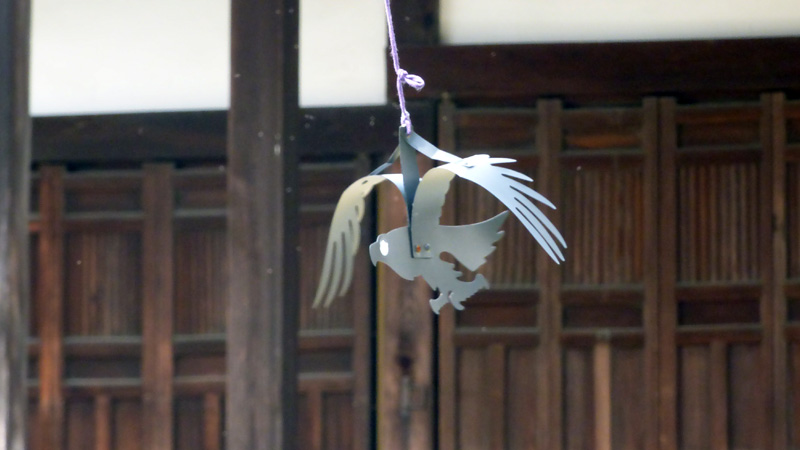 この旧街道、軒下丈くらいの、ギンギラギンの七夕飾りを吊るして、作りものを展示しているよ。「作りもの?」