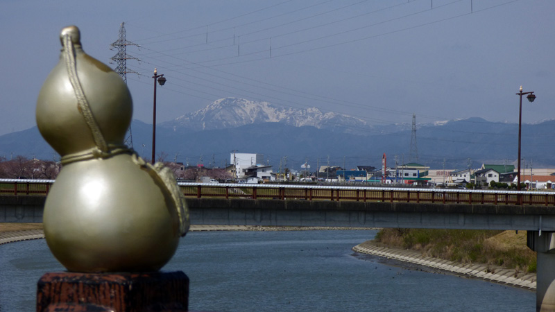 「いや〜、立身出世をイメージさせる、金の瓢箪と、雪をいただく伊吹山。どちらも、いいね。」