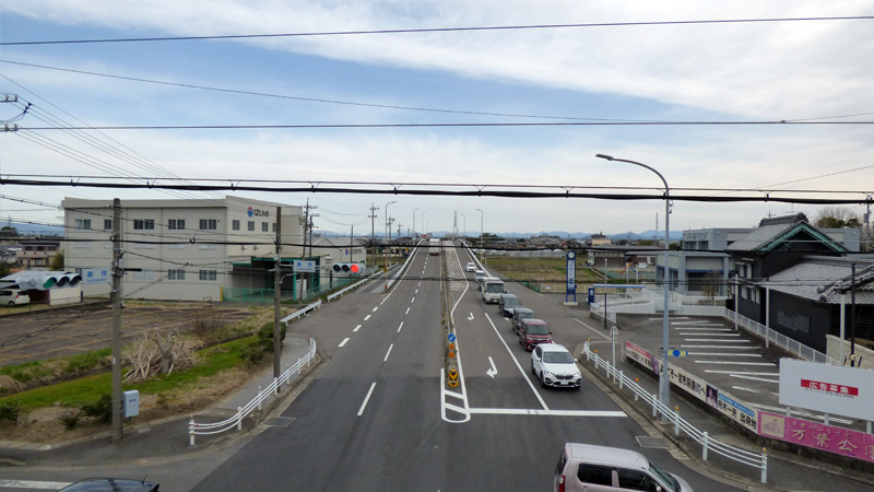 美濃路と国道155号線との交差点。旧街道は、横断歩道なく、歩道橋で跨ぐ。「なんか、ちょっと、寂しさを感じるね。」