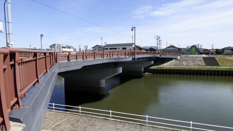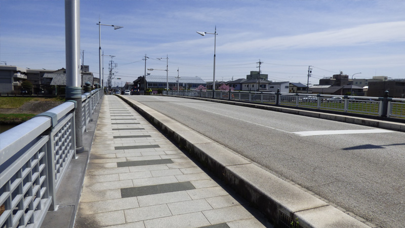 「清洲越しって言うのは?」 江戸時代の初め、名古屋城を築城した時に、清洲の街を、丸々引越しさせた。「丸々?」 そう、その丸々の例がこの橋。「へ〜、橋まで、持っていく? ここ、街道なのに??」