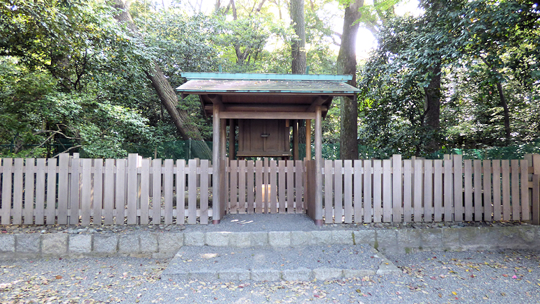 まず、熱田神宮の摂社なんだよね。「隣の神社じゃないの?」境内の一角にあるけど…。「あるけど?」境内からは、行くことができない。「なぜ?」しかも、本殿に、背を向けた格好になってる。「謎だね。」