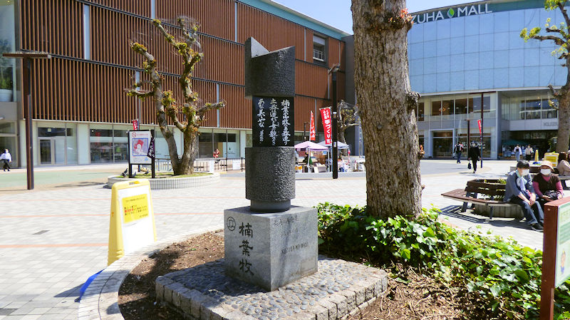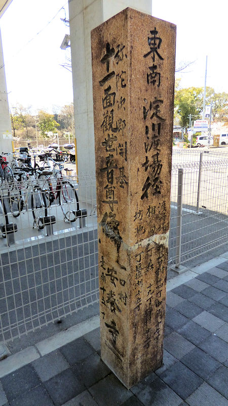 淀駅前にある淀小橋増築碑。