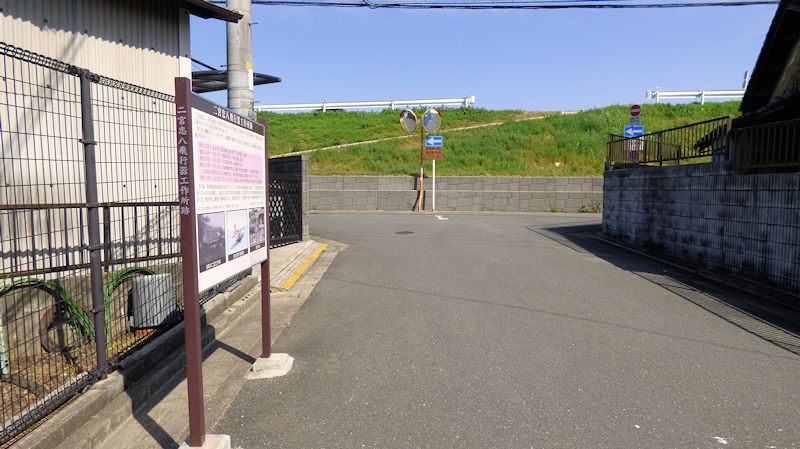 淀小橋跡の碑と案内板。来た道を振り返ったところ。